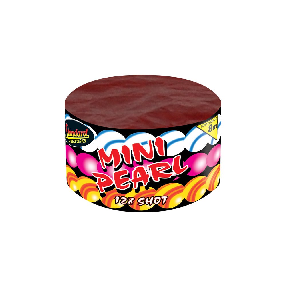 A punchy 128 shot pearl cake showcasing red, green and blue stars with white glitter